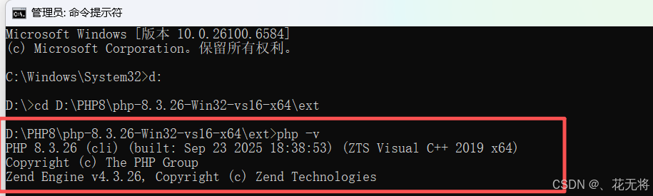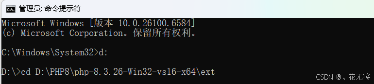 例如:cd D:\PHP8\php-8.3.26-Win32-vs16-x64\ext