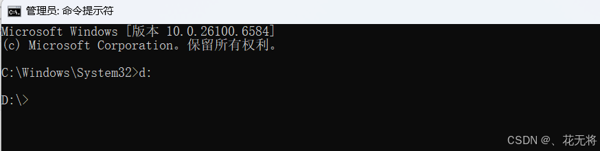成功进入 d 盘,如果把 php 安装到其它盘,一样进入道理。