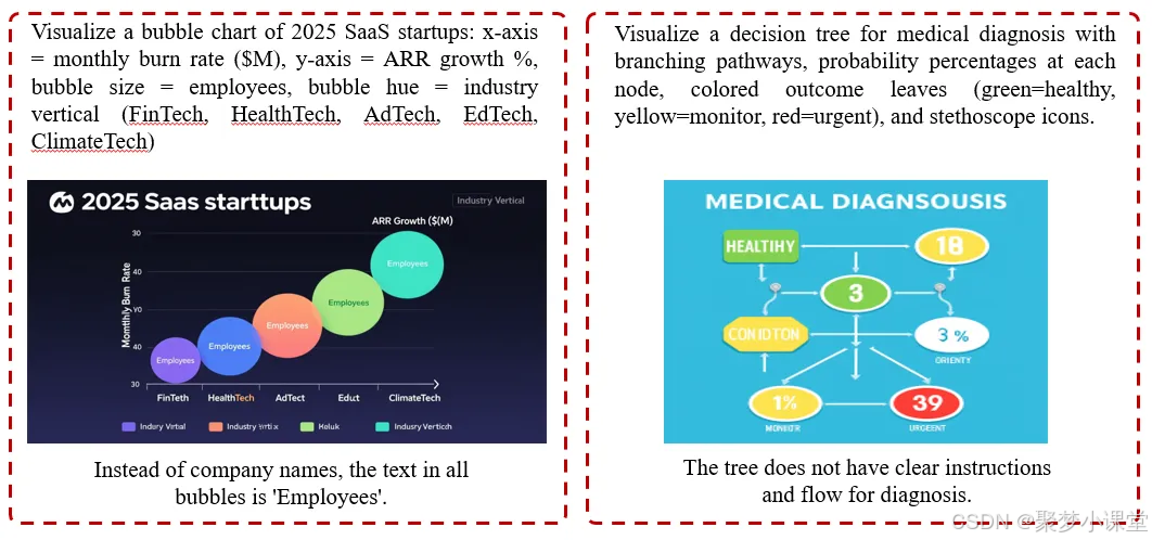 在图示类或分析类视觉内容中,模型难以维持图像的内部逻辑和结构。