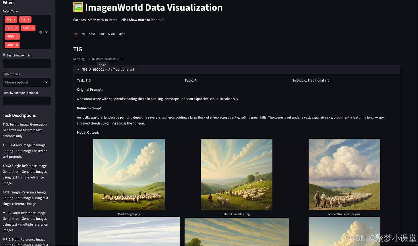 探索任务与可视化效果:https://huggingface.co/spaces/TIGER-Lab/ImagenWorld-Visualizer