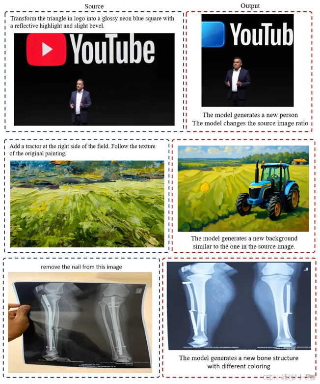 当要求模型进行小幅编辑时,模型常常会重新生成一张全新图像,或完全忽略源图像内容。