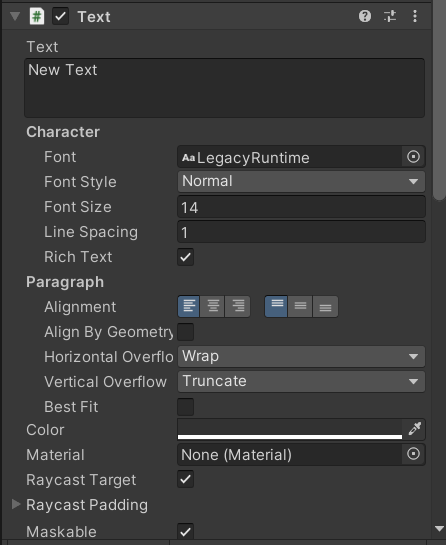 同样的,Text大多数都在Inspector窗口配置即可,代码一般只会修改Text文本内容:
