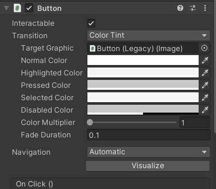 其中,.interactable控制的是按钮是否激活。如果是true为激活,按钮可以按下;如果是false按钮会变灰,不能响应点击。