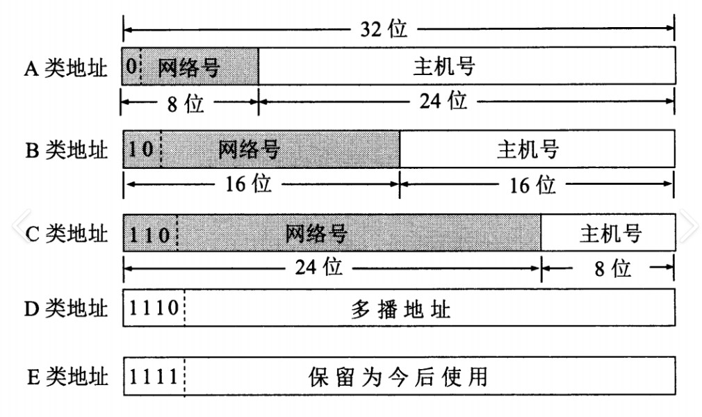 过去曾经提出过一种划分网络号和主机号的方案,把所有IP地址分为五类,如图