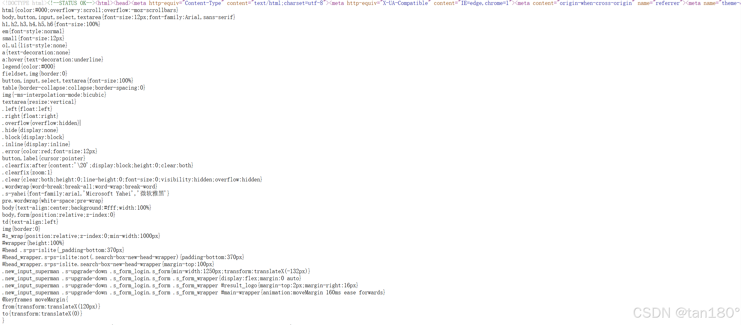 - 带层次的文件路径 : /dir/index.html 表示的是要访问的资源所在的路径。访问服务器的目的是获取服务器上的某种资源 ,通过前面的域名和端口已经能够找到对应的服务器进程了,此时要做的就是指明该资源所在的路径,当我们发起网络请求的时候,本质上是获得了以下图的网页信息,再被浏览器解释,因此才有了所谓的呈现效果