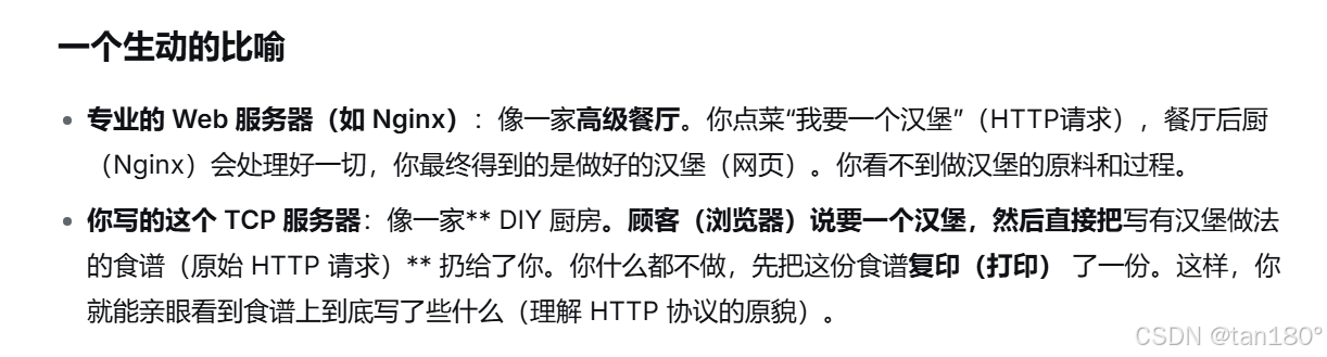 所以我们现在就来自己写一个 TCP 服务器,来看看这个 HTTP 协议的原貌到底是什么,来让我们有一个更加深刻的了解