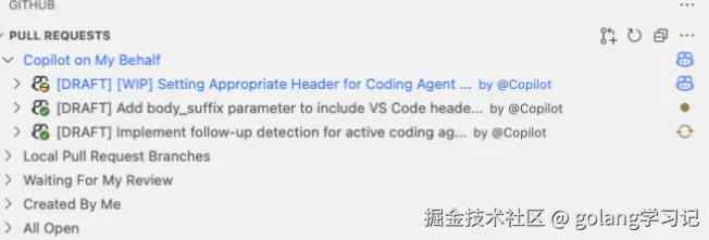 在 GitHub Pull Requests 视图中,新增专属区域,展示:
