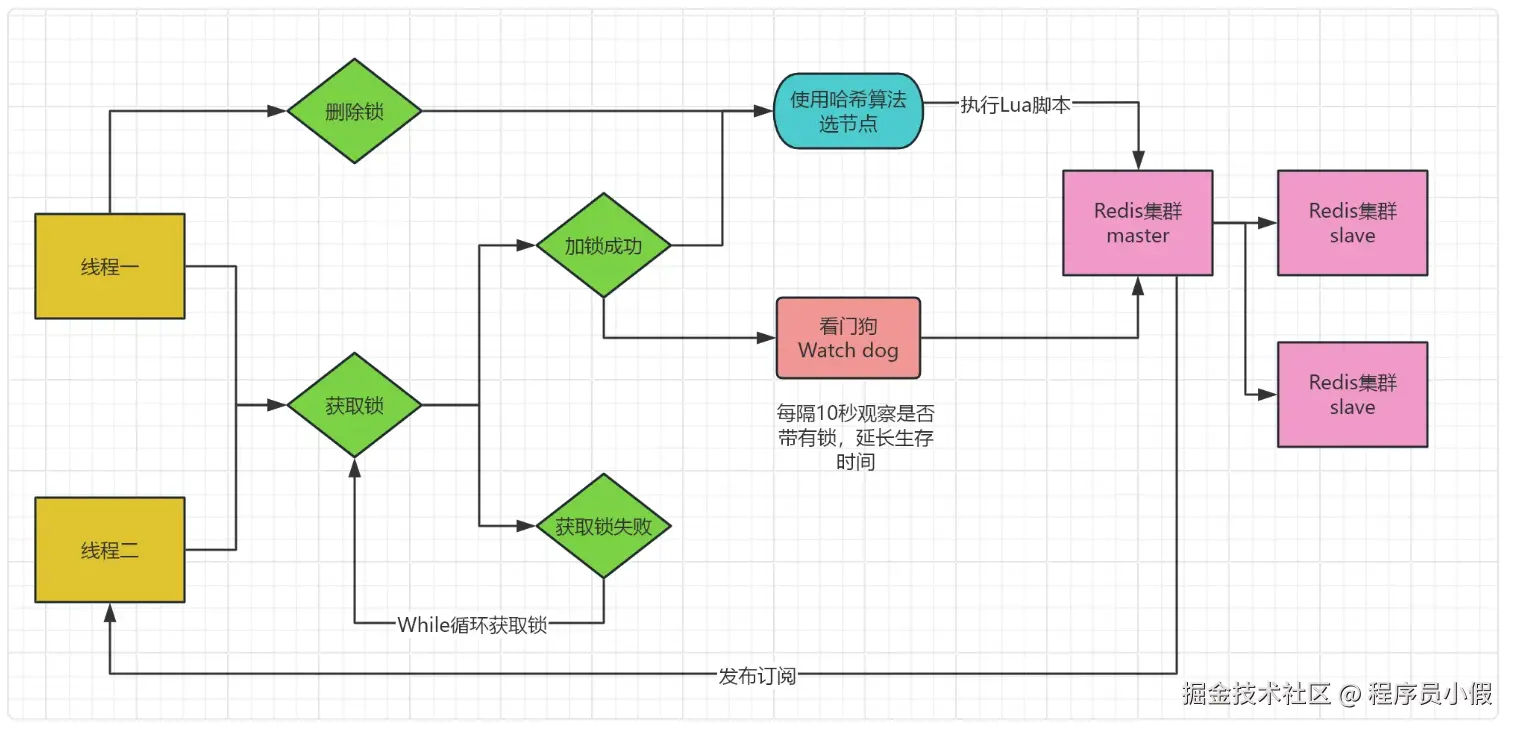 命令)。只要 JVM 没有挂掉,这个锁就不会因为超时而被意外释放,从而避免了死锁。如果 JVM 挂掉,看门狗线程也随之停止,锁最终会自动过期。