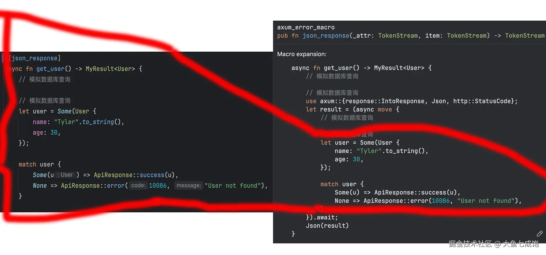 本文通过一个小例子,一步一步封装过程宏,完成对json结果的封装,减少json重复代码。开发过程还是比较繁琐,一般在基础组件中使用。跟其他语言比,Rust 宏比 Java 注解更强,比 C++ 模板更安全,比 Go 的代码生成更优雅。