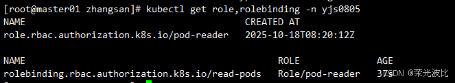 命名空间的Pod操作权限",再通过RoleBinding将Role赋予zhangsan