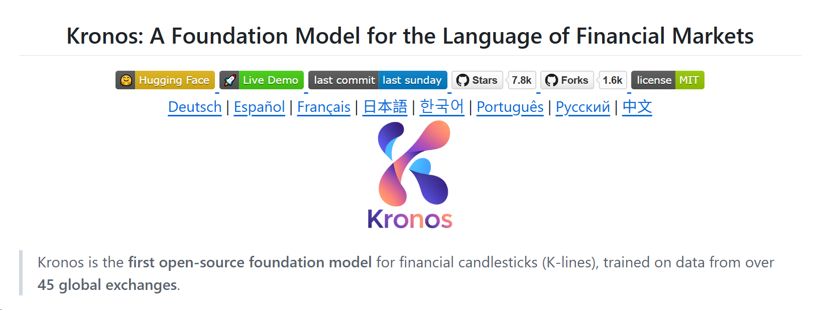 💡 推荐语: Kronos:首个专精金融市场语言的基础模型,用AI解码财经数据,开启量化交易新纪元。