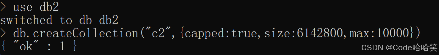 命令:db.createCollection("c_name",{capped: trrue, size: *, max: * })
