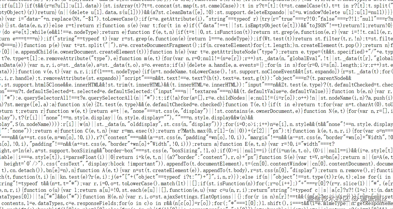 因此,很多前端工具在修改完代码后,会生成一个SourceMap文件,这个文件中记录了我们写的源代码和生成代码中标识符(主要包含变量名,属性名等)的文件位置对应关系。有了这个关系之后,当代码出错时,浏览器或者其它工具可以将出错位置定位到源代码的具体位置上,方便排查运行时问题。如果没有这个文件,则只能定位到生成代码的位置。例如这是经过压缩后的部分jQuery代码,在这种生成代码中排查问题太难了。
