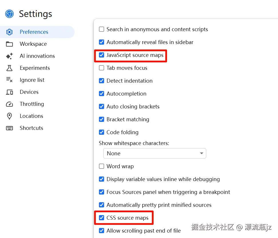 首先打开浏览器的SourceMap开关(默认是打开状态):