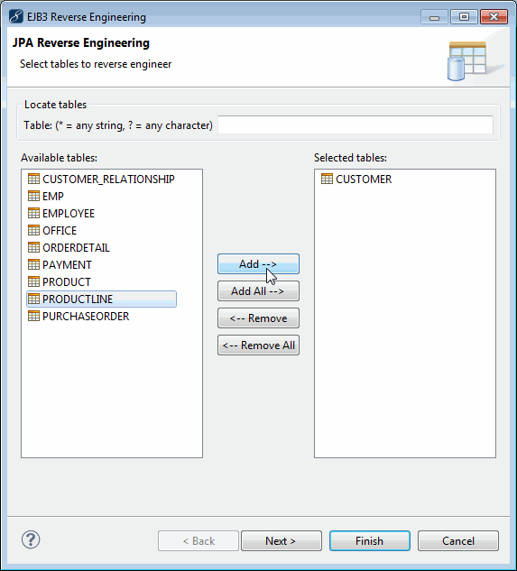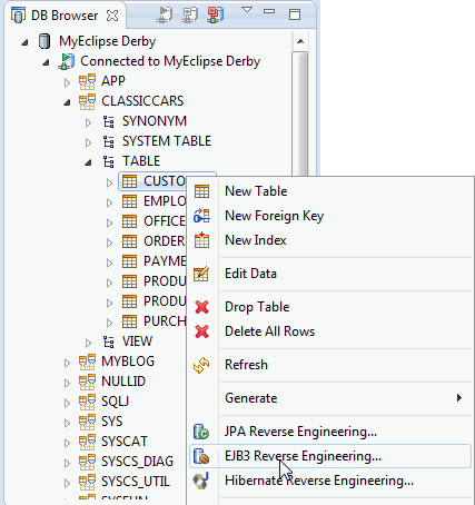 您还可以从DB Browser视图生成实体,右键单击要进行逆向工程的表,并从菜单中选择EJB3 Reverse Engineering。