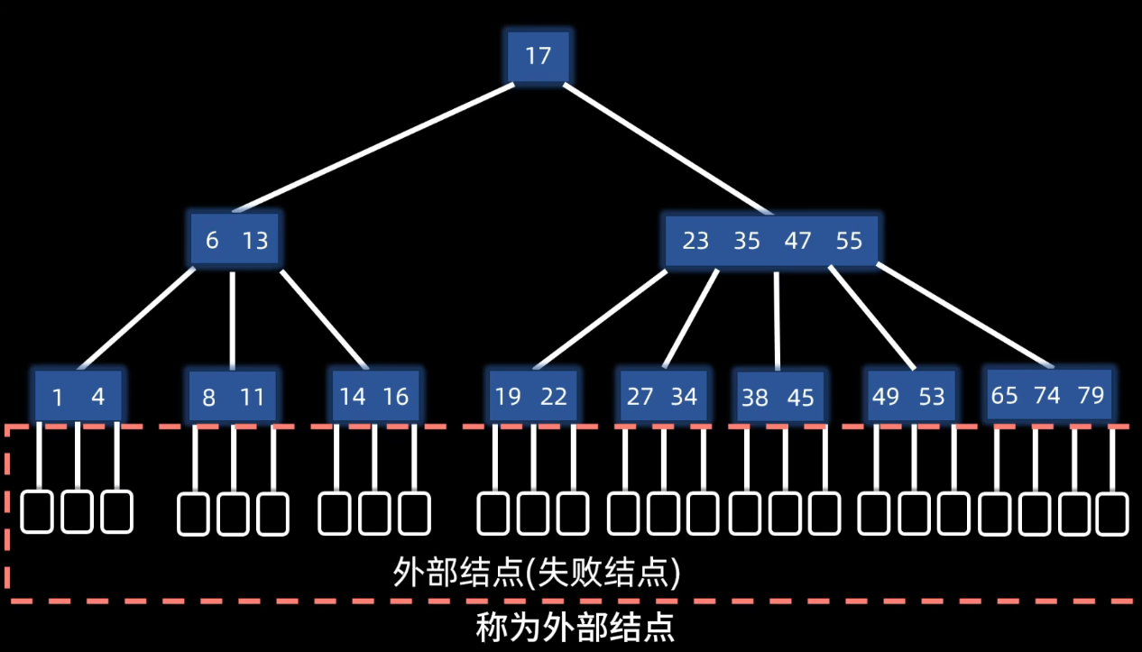 如果走到失败节点,则数据不存在,查找结束。