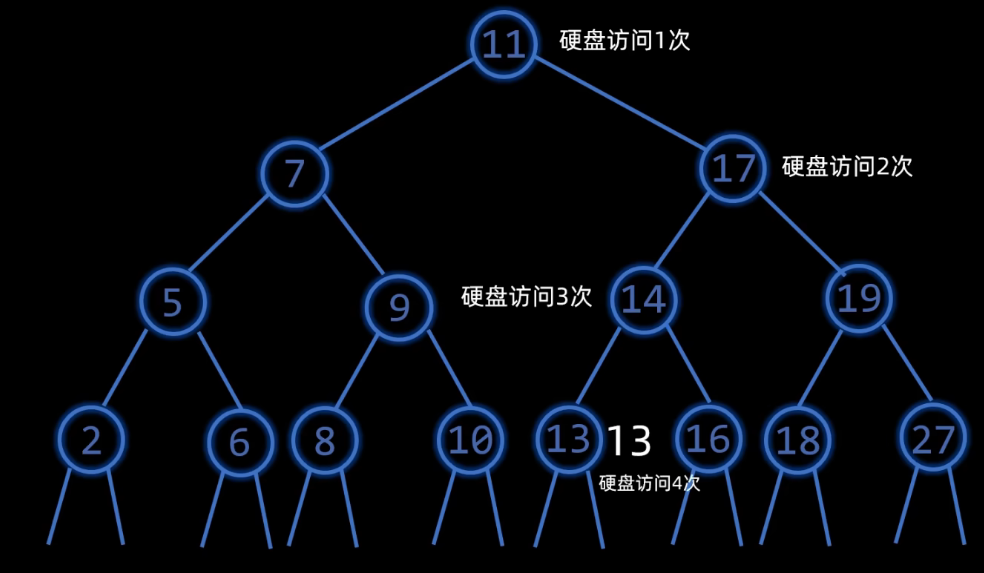 查找并不是一次性加载到内存查找,而是分多次硬盘访问: