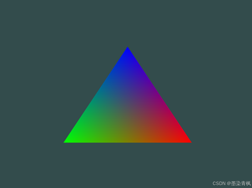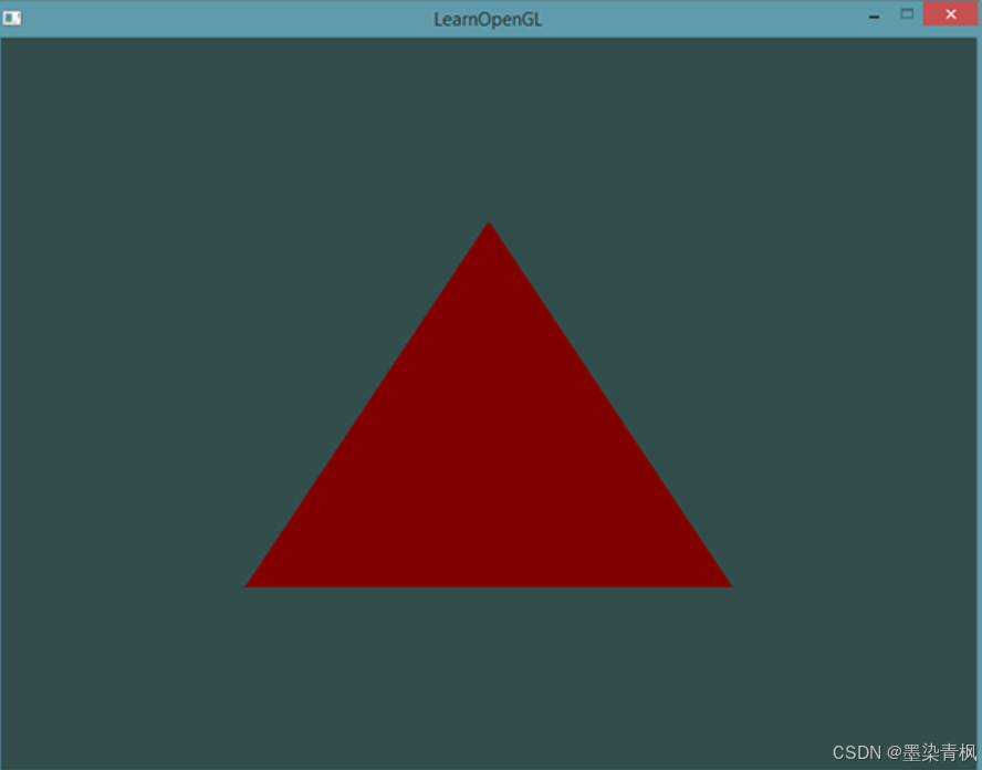 输出,并在片段着色器中声明了一个类似的vertexColor。由于它们名字相同且类型相同,片段着色器中的vertexColor就和顶点着色器中的vertexColor链接了。由于我们在顶点着色器中将颜色设置为深红色,最终的片段也是深红色的。下面的图片展示了输出结果: