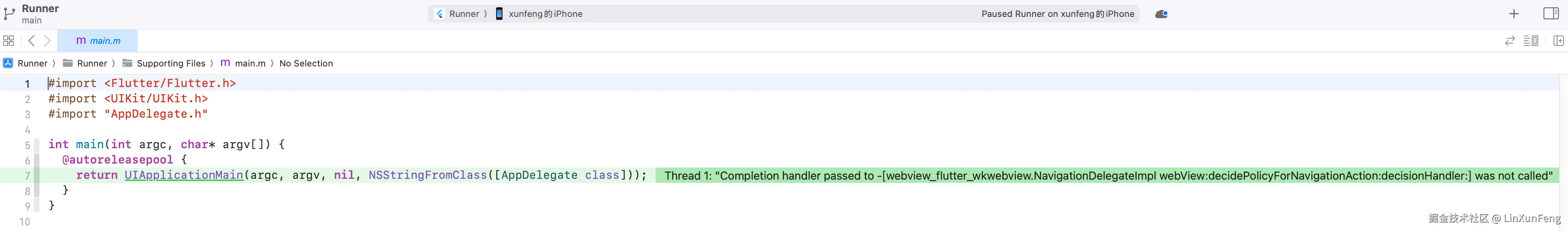 Completion handler passed to -[webview_flutter_wkwebview.NavigationDelegateImpl webView:decidePolicyForNavigationResponse:decisionHandler:] was not called