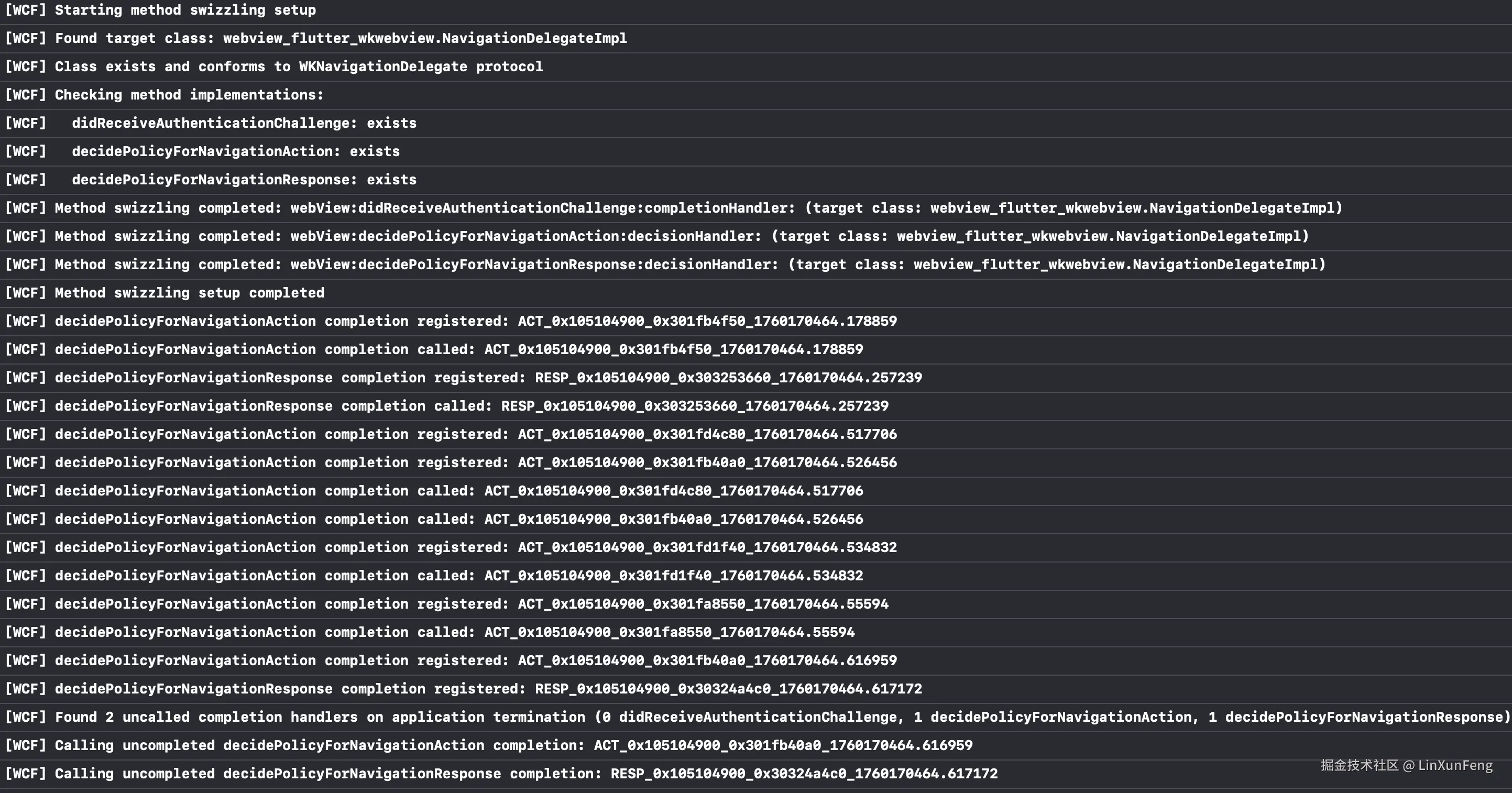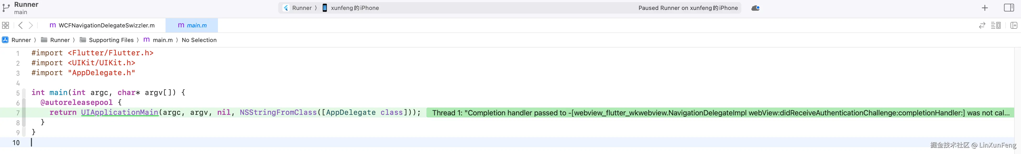 Completion handler passed to -[webview_flutter_wkwebview.NavigationDelegateImpl webView:didReceiveAuthenticationChallenge:completionHandler:] was not called