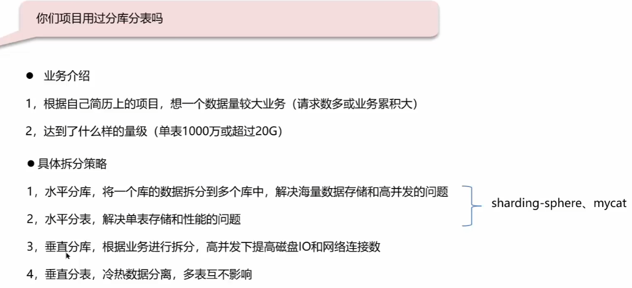 - 垂直分库:以表唯依据,根据不同业务将不同表分到不同的库(微服务的各模块的数据库)