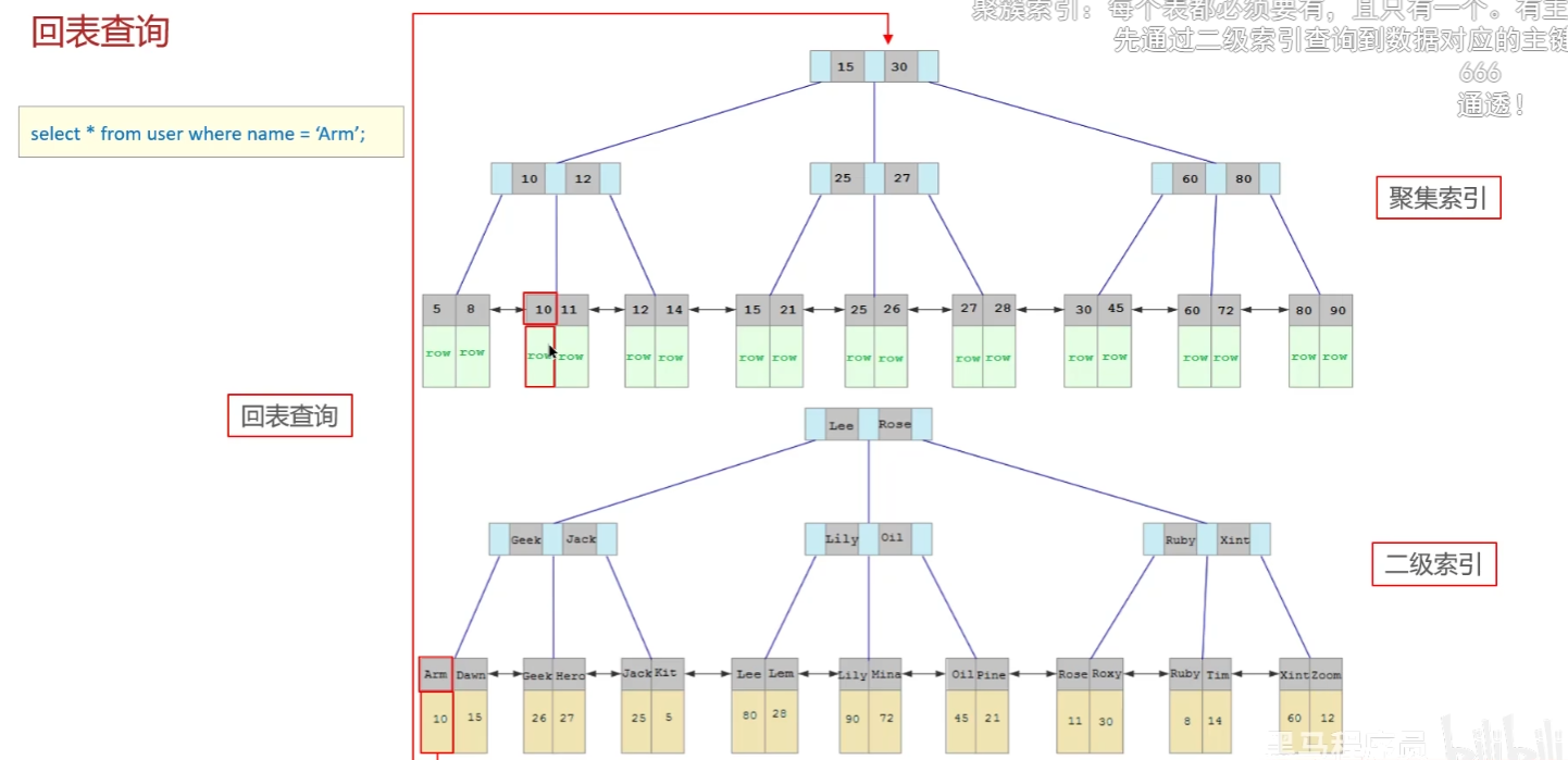 - 非聚簇索引:独立于数据行的单独结构,一个表可以有多个,索引的叶子节点包含数据行的指针,查询需要回表查询