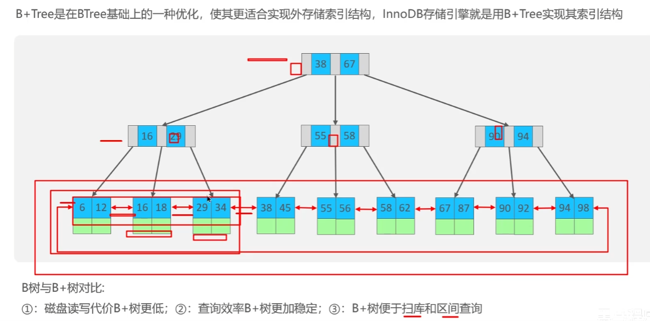 - Mysql索引底层韦B+树(旨在叶子节点上存放数据(一般为信息的逻辑地址))。