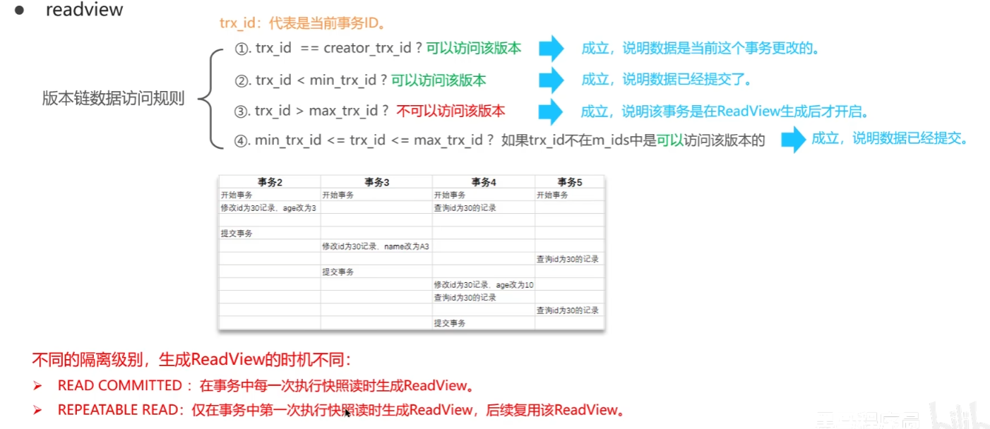 - 这是快照读Sql执行时Mvcc提取数据的重要依据,记录并维护当前活跃的事务(未提交)的ID