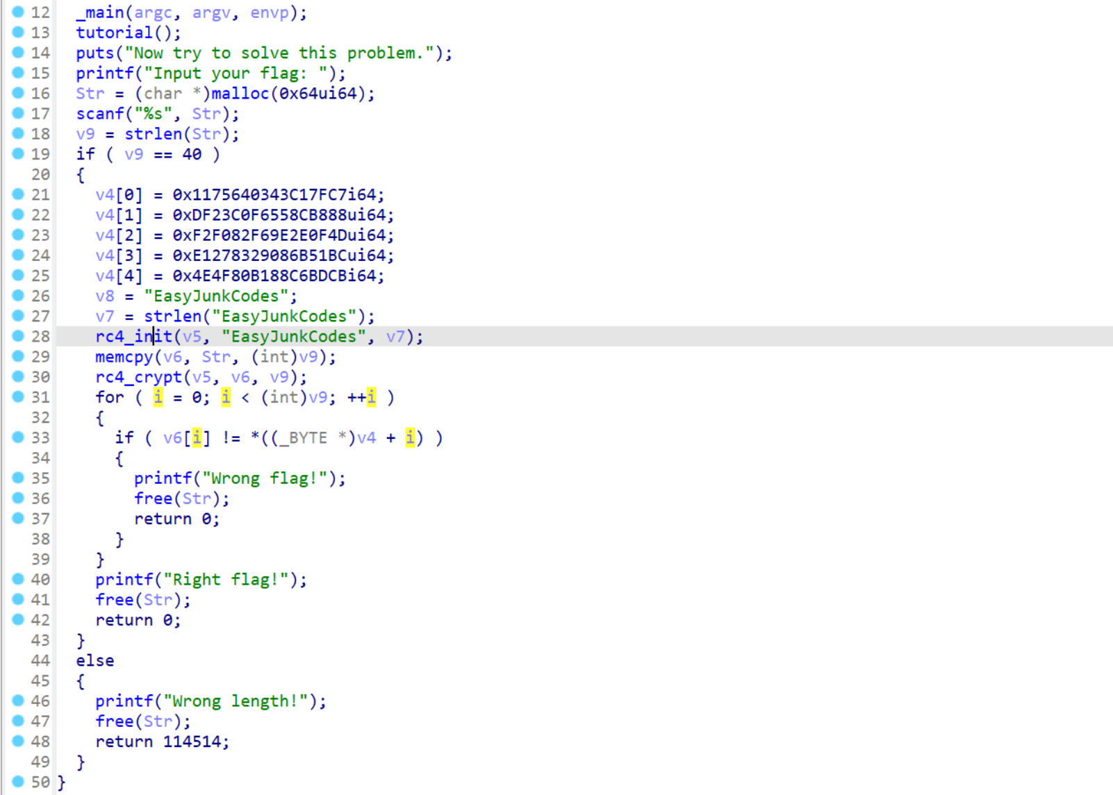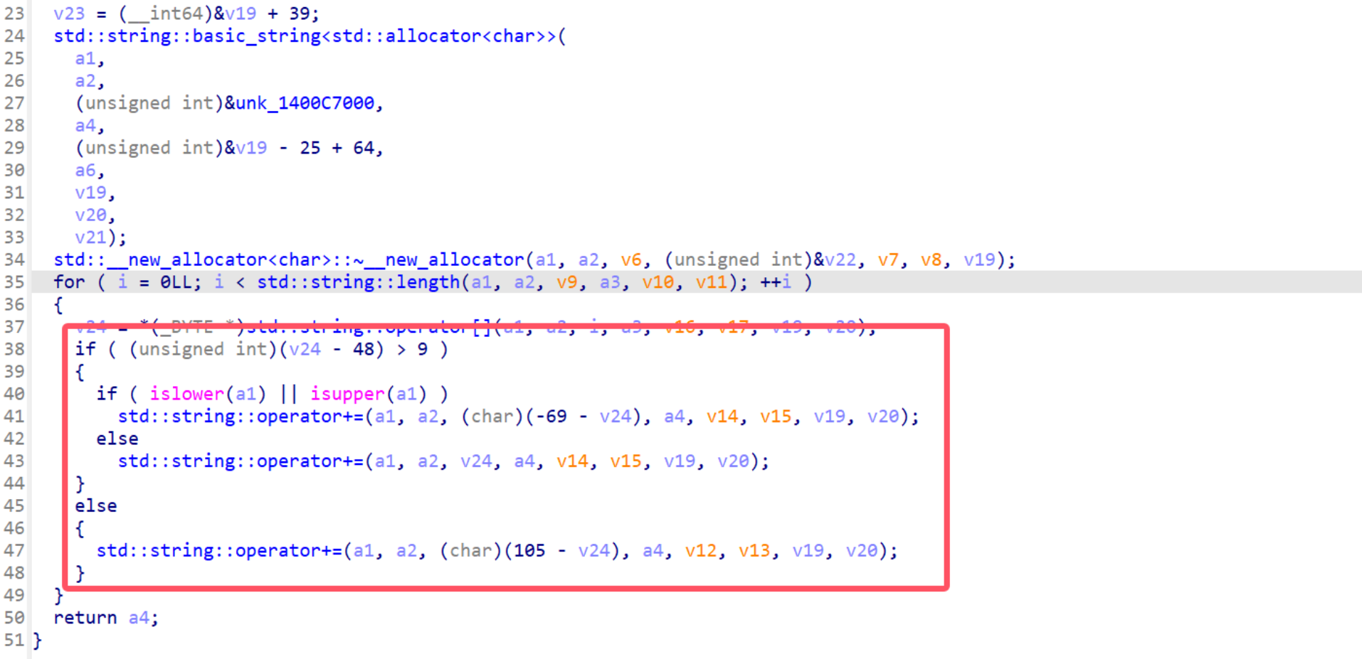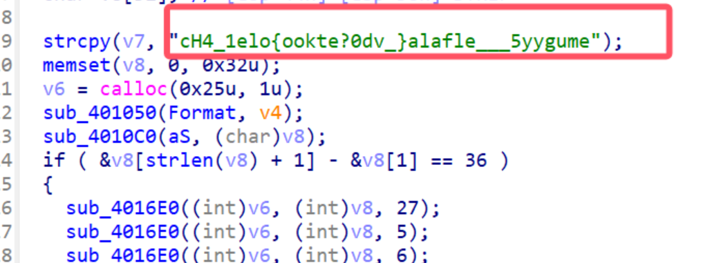 主要逻辑如下,其中v19是我们的输入,v21是密文,长度为34