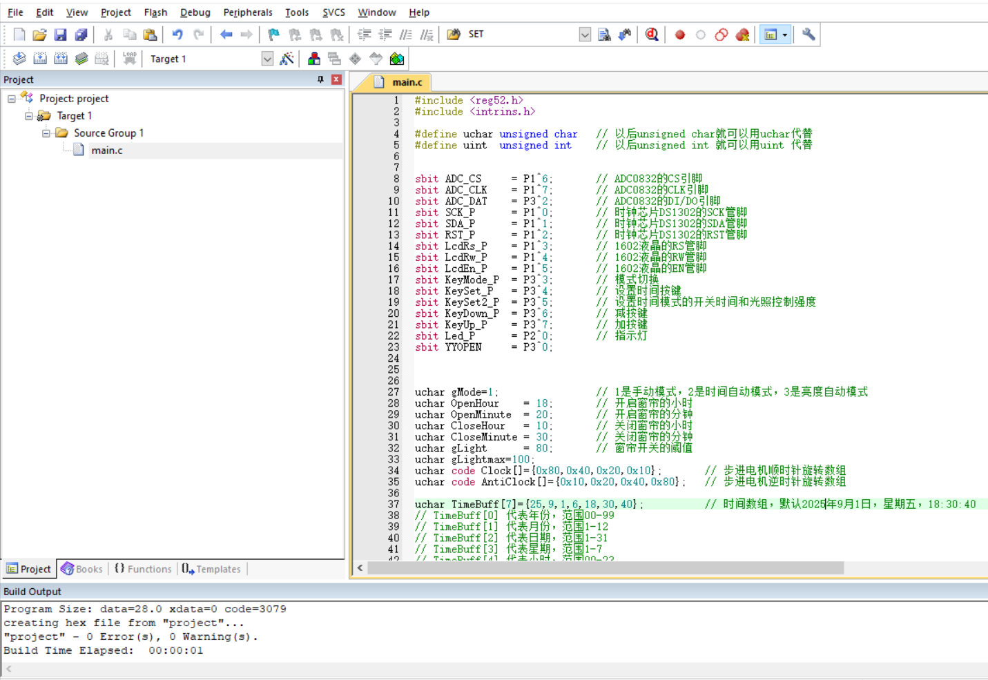uchar TimeBuff[7]={25,9,1,6,18,30,40}; // 时间数组,默认2025年9月1日,星期五,18:30:40