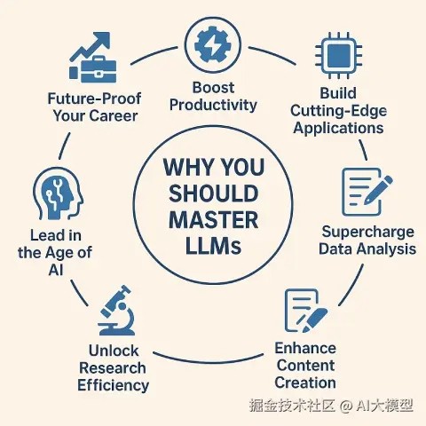 随着对 LLM 专业知识人才的需求急剧增加,对 LLM 的实际理解已经成为软件工程、数据科学等领域的必备技能。如果你还没有开始学习 LLM,现在就是最好的时机,去探索、去提升自己。