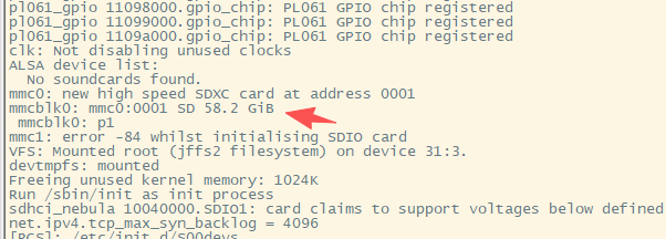4.在串口日志上可以看到,linux系统识别到了TF卡,打印如图所示