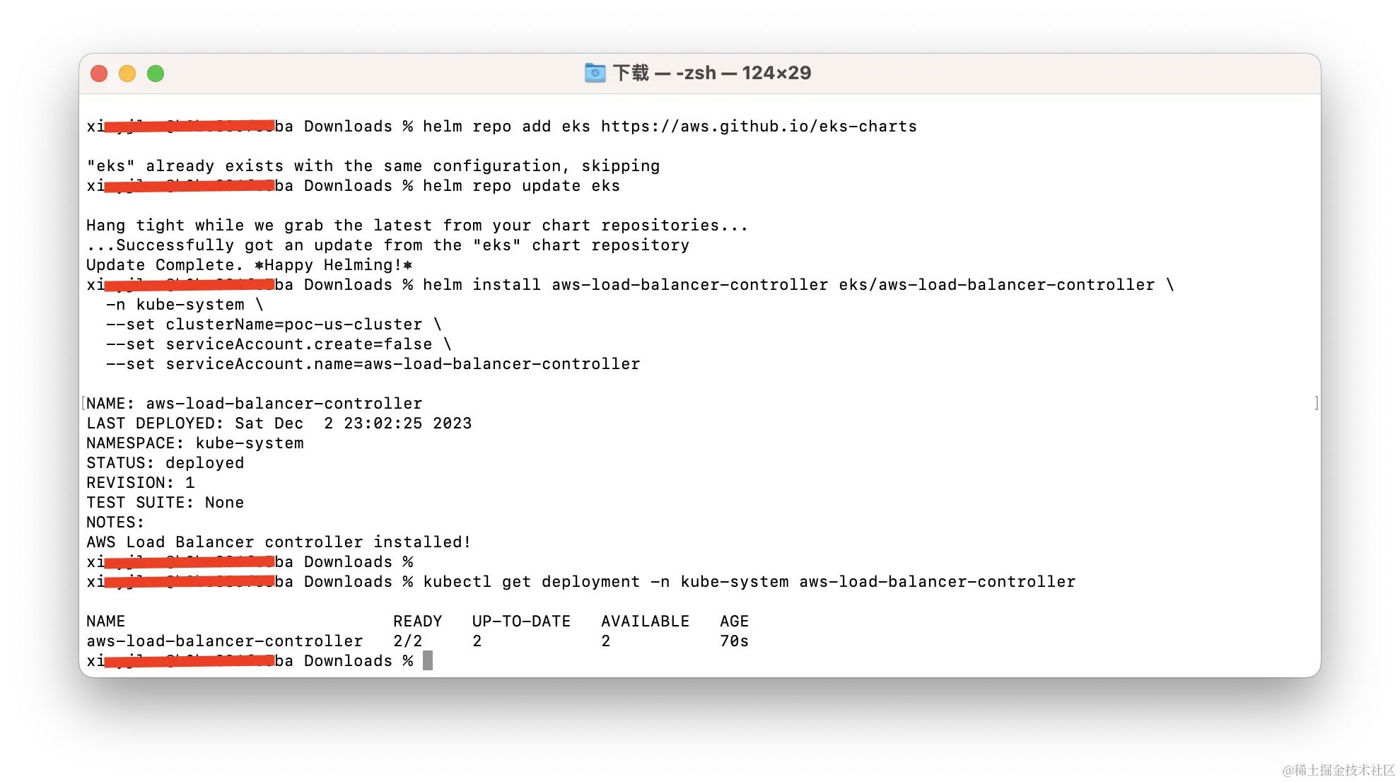 安装后我们可以进行检查,出现aws-load-balancer-controller 2/2字样就证明安装成功了