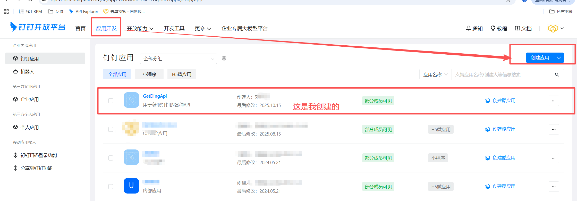 首先,**需要登录钉钉开放平台。同时需要所在企业的管理员权限。**这是前期准备工作。如下: