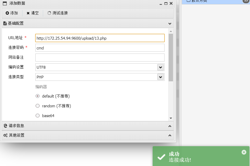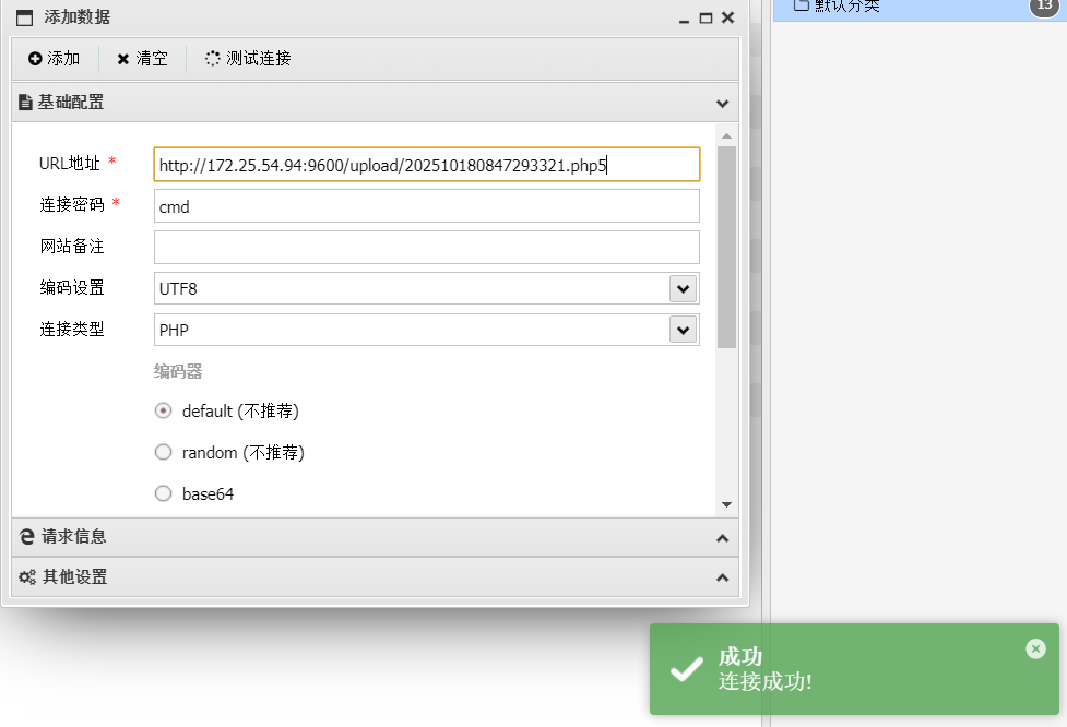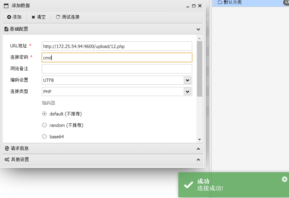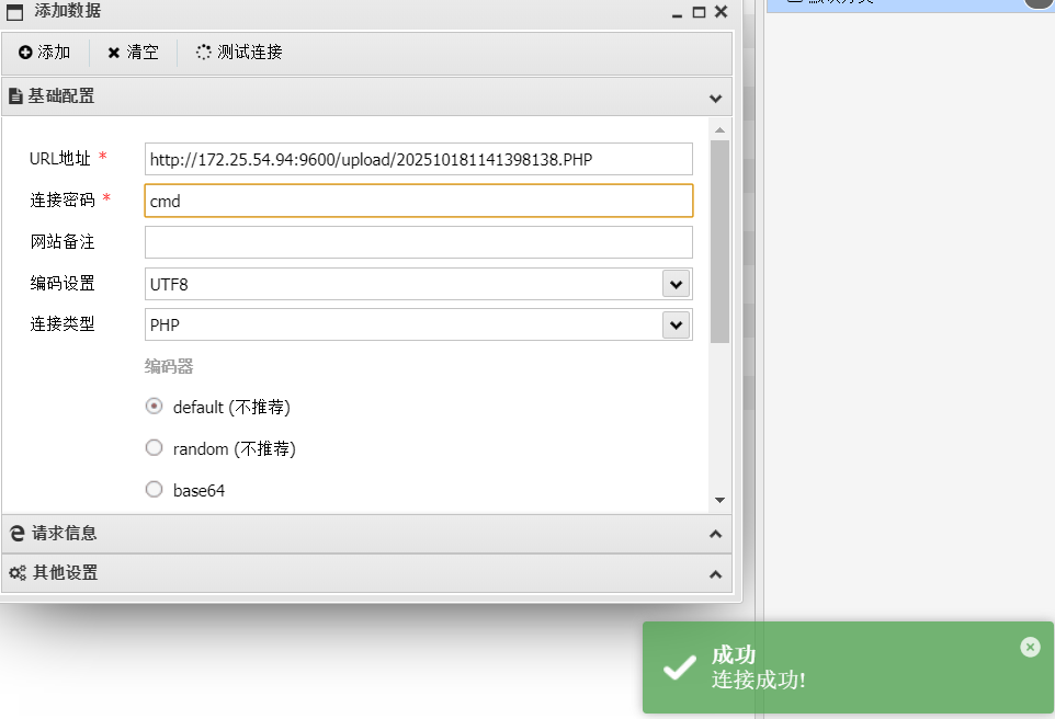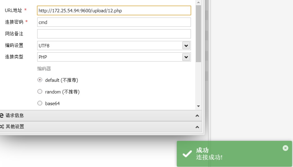 使用windwos环境搭建的成功上传,使用蚁剑连接