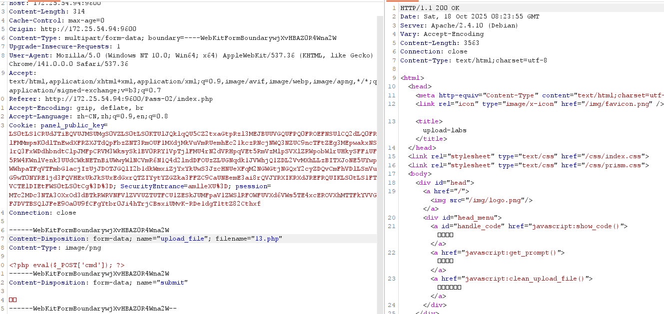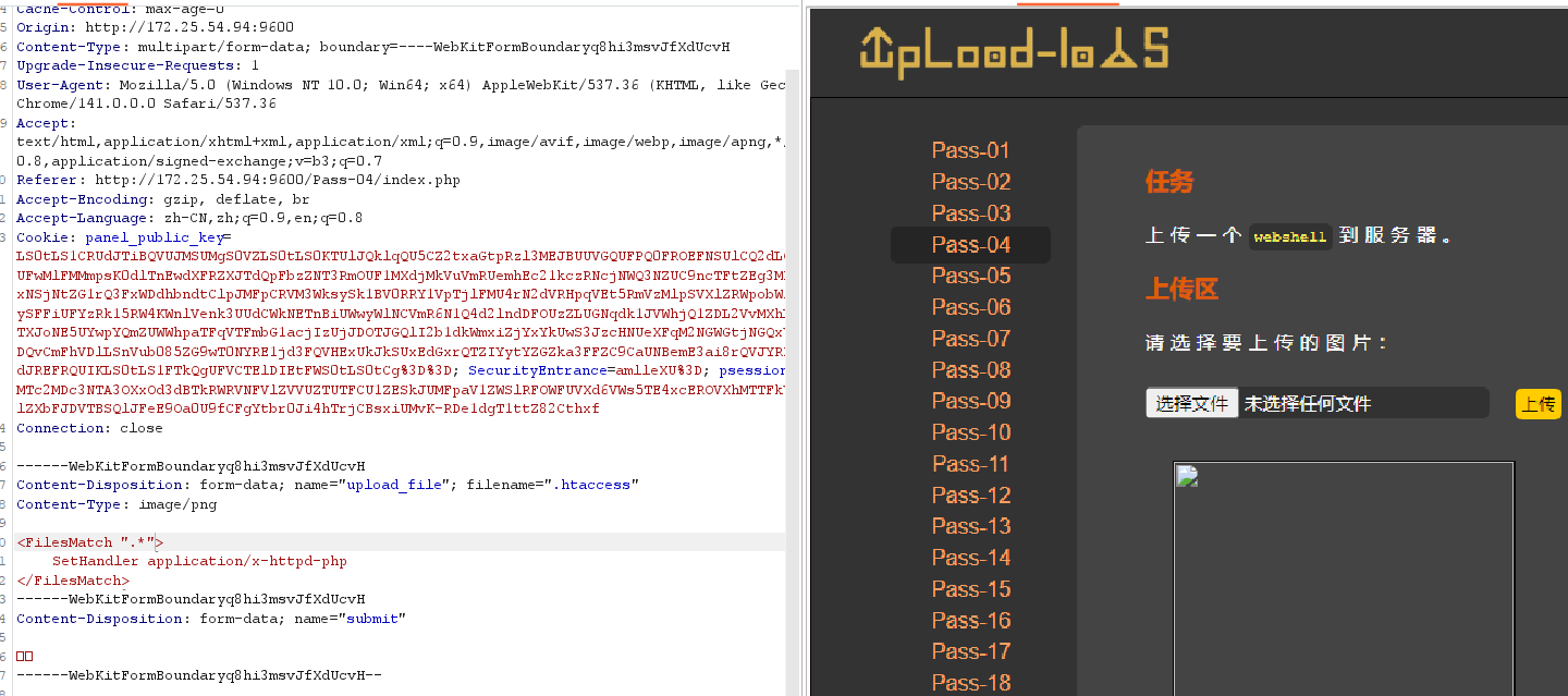 都无法绕过,那么可以尝试使用.htaccess,上传此文件可以修改apache2的配置,让其将jpg文件当成php文件进行解析,先构建语句