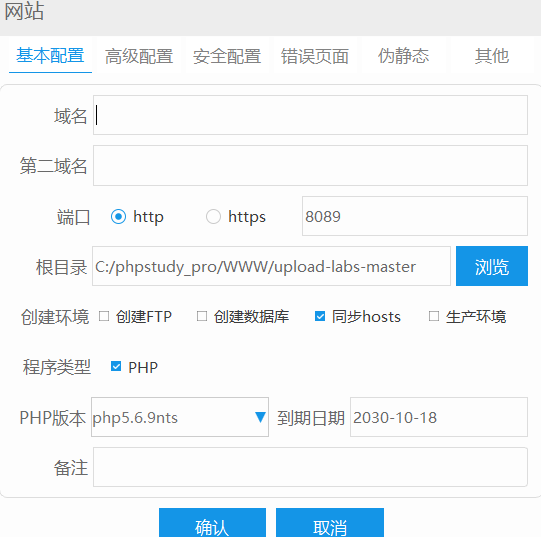 先下载靶场源码文件c0ny1/upload-labs: 一个想帮你总结所有类型的上传漏洞的靶场,然后下载小皮面板