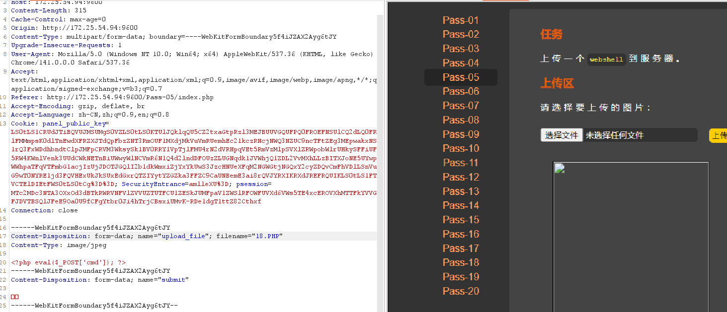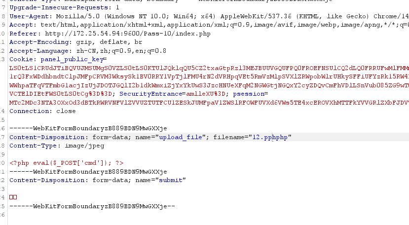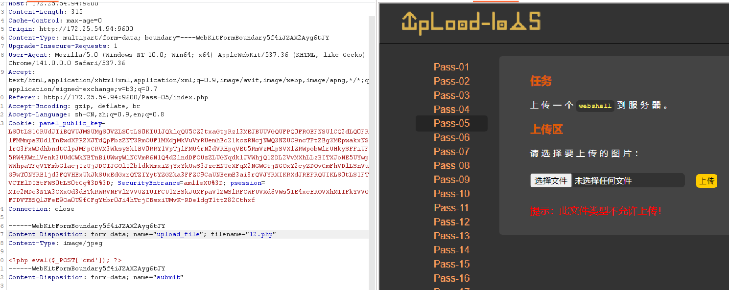 还有的方法就是php还可以解析一些特殊格式,比如说php5,php7,pht等格式,那么我们这里使用php5来进行绕过