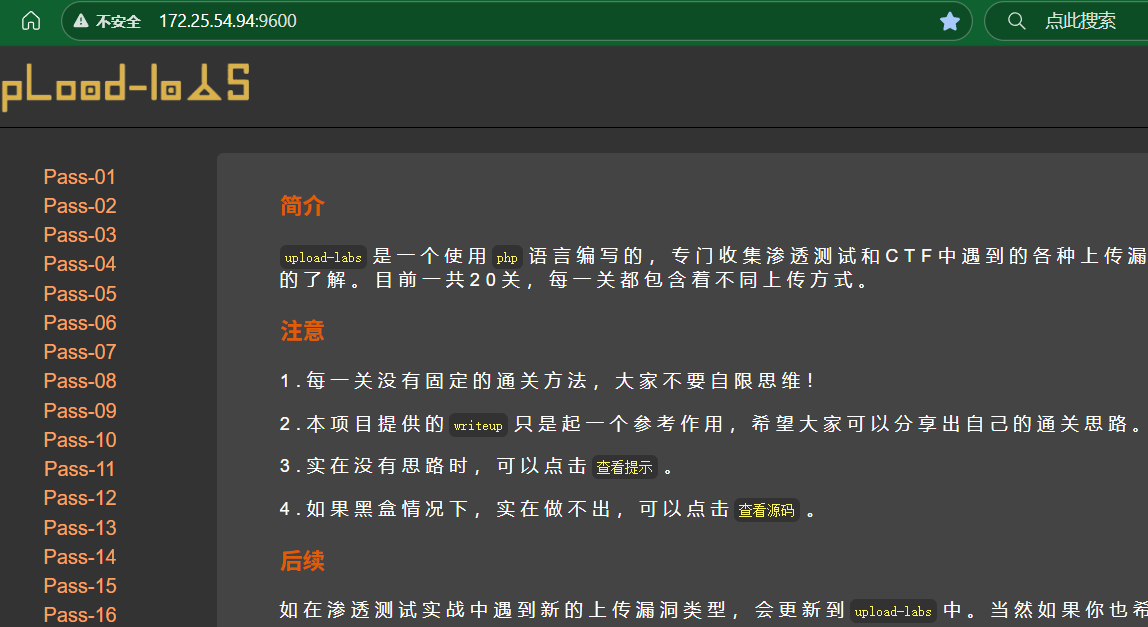 最近我们已经完成了ssrf,xss,sql,xxe靶场的复习,那么今天我们就来学习uploads-labs靶场吧。