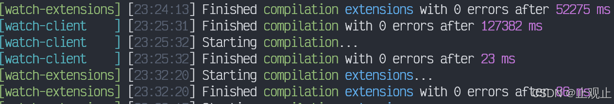 看到类似输出,说明 VSCode 内置扩展与客户端已成功编译。