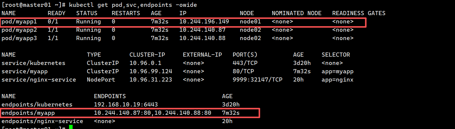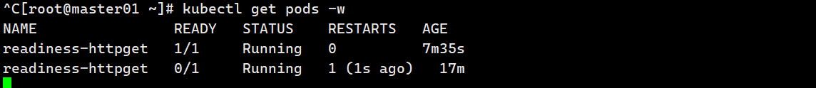 //readiness探测失败,Pod无法进入READY状态,且端点控制器将从endpoints中剔除删除该Pod的IP地址