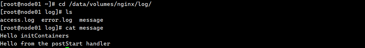 command: ["/bin/sh", "-c", "echo 'Hello initContainers' >> /var/log/nginx/message"]
