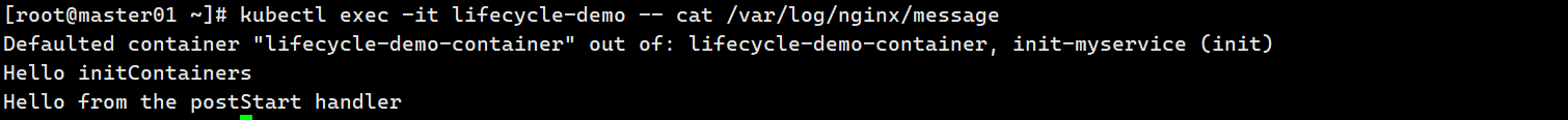 command: ["/bin/sh", "-c", "echo Hello from the postStart handler >> /var/log/nginx/message"]