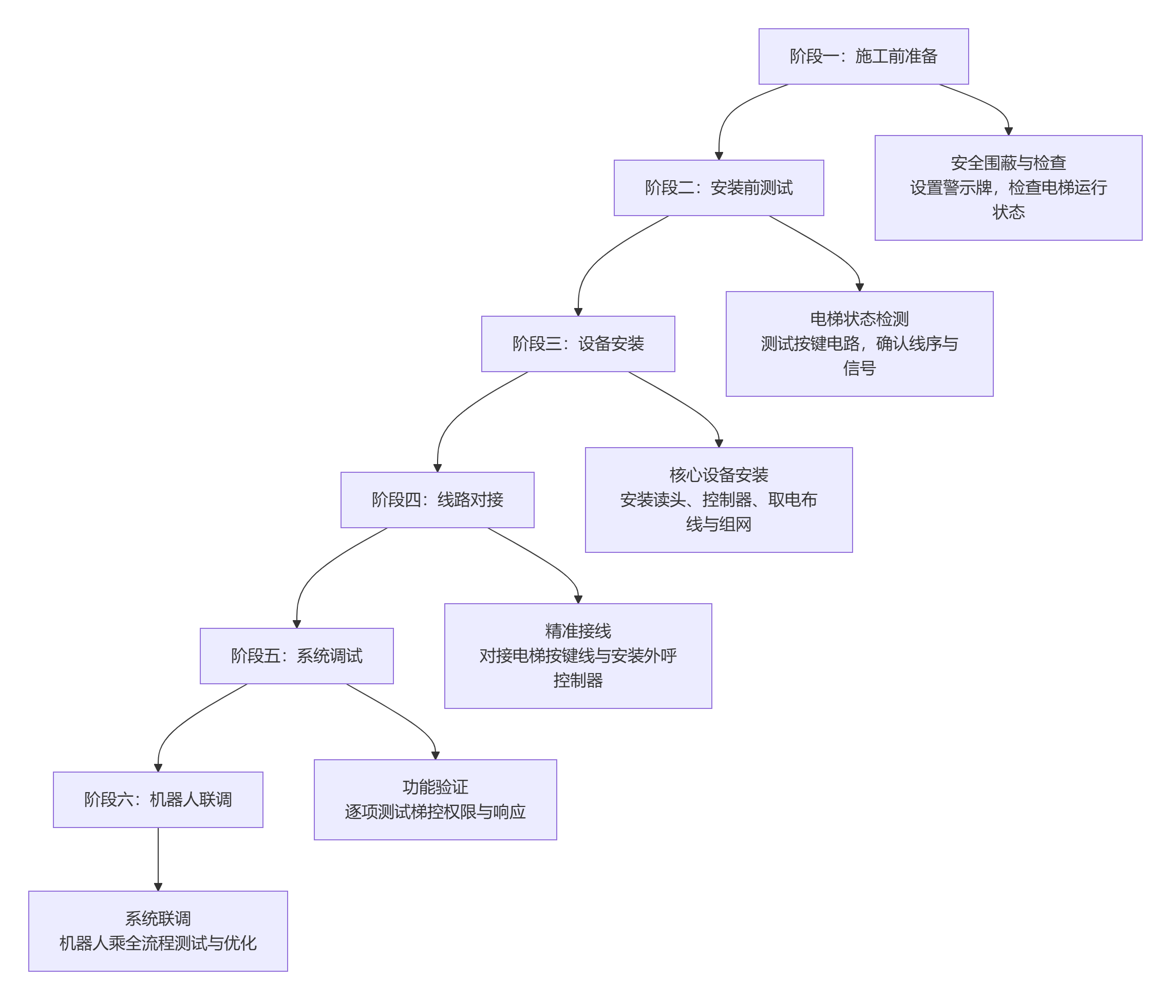 前言 :本文系统梳理了电梯门禁控制系统(梯控)的安装与调试全流程。主要内容包括:1)施工前需停运电梯并确认设备状态;2)门禁兼容性测试要点,重点区分线路类型及品牌差异;3)设备安装四步流程,涵盖读头固定、控制器部署等关键环节;4)调试阶段需复查接线并测试各项功能;5)机器人联调需对接通讯协议并验证安全机制;6)针对三菱、迅达等特殊品牌提出定制解决方案。全文强调标准化操作,要求施工不影响电梯原生功能,并确保机器人召梯成功率≥99.9%,同时提供了设备防护、故障排查等实用建议。