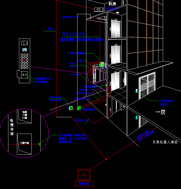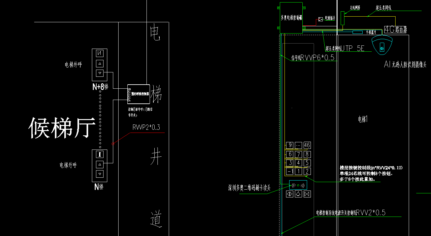 布线连接:将线缆(如RVV3×2.5)连接到读头和梯控控制器。控制器通常安装在电梯控制柜内,接线时需确保电源分离:主电源使用独立回路,避免与电梯原有系统共用电源线,防止电磁干扰。