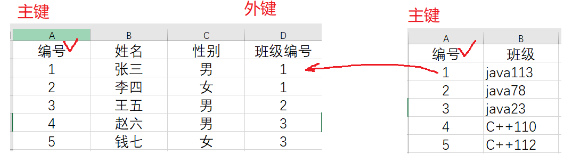 - FOREIGN KEY 外键约束,一张表要与另一张表的主键或唯一键进行关联,说明表与表之间的关联关系