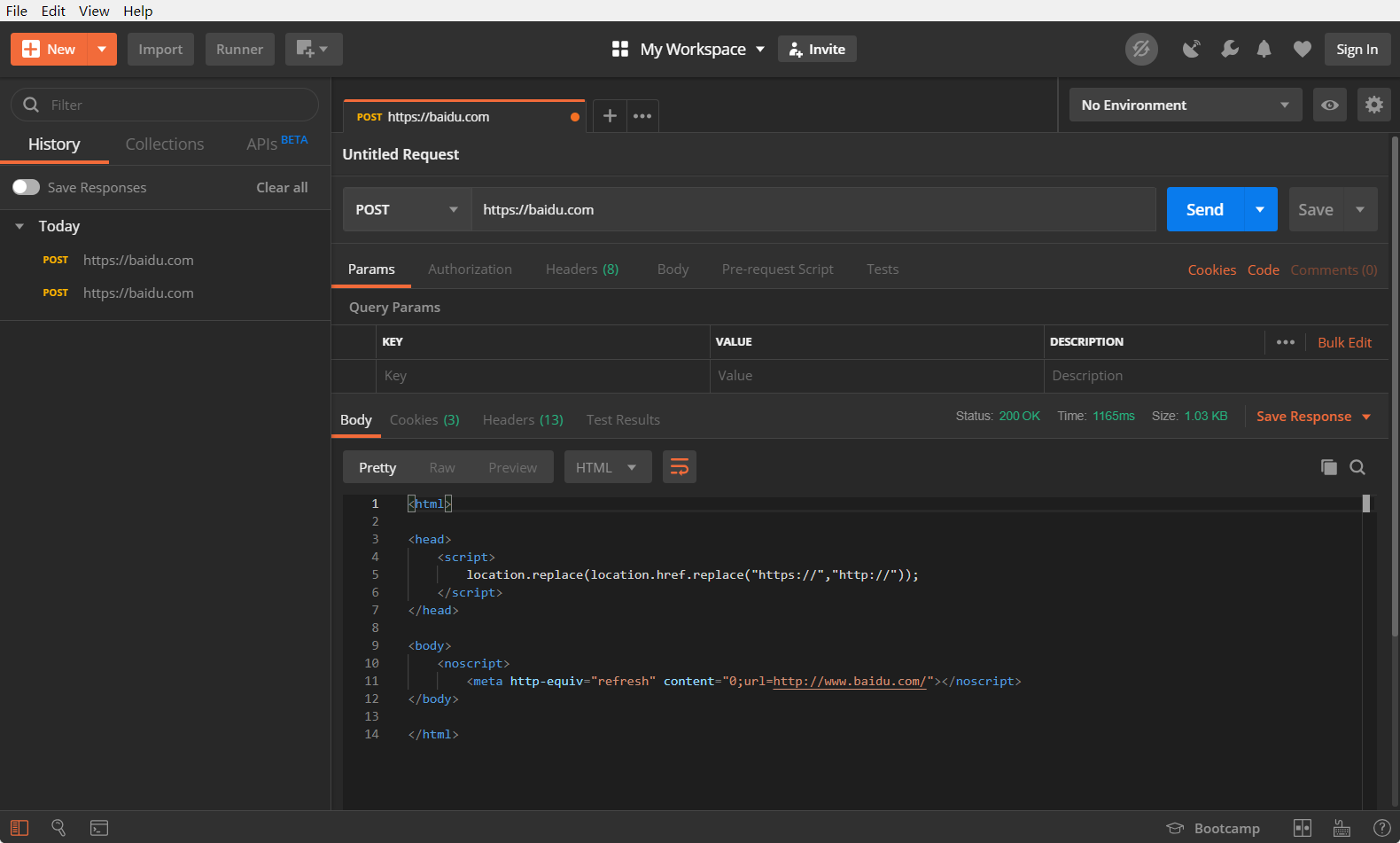 发送请求。 - 可以查看请求历史记录,方便找回上次测试。
