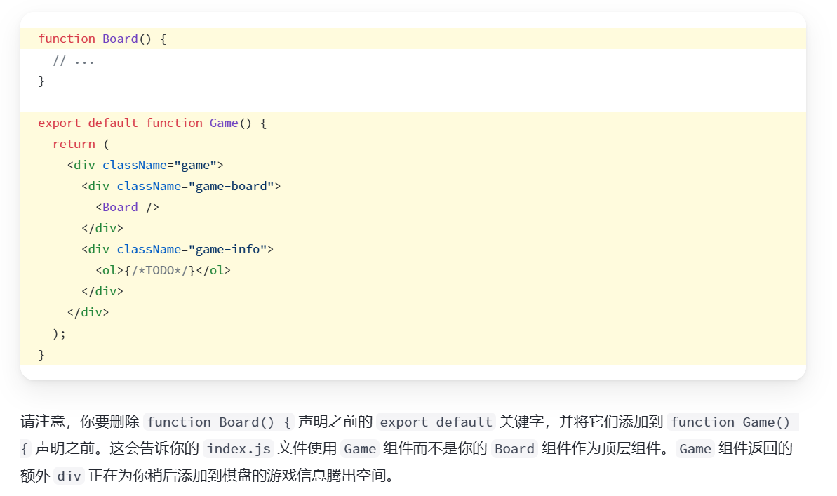 这段内容的核心是调整组件的默认导出,让 Game
