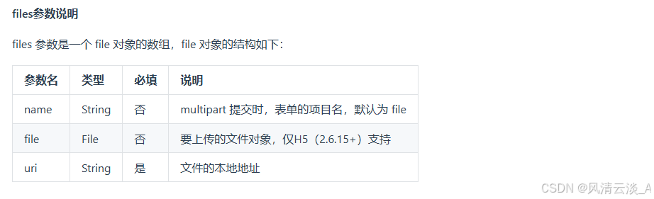 根据官网的文档,files参数数据格式必须是array,里面每项的结构是这样的,所以必须按照要求进行配置