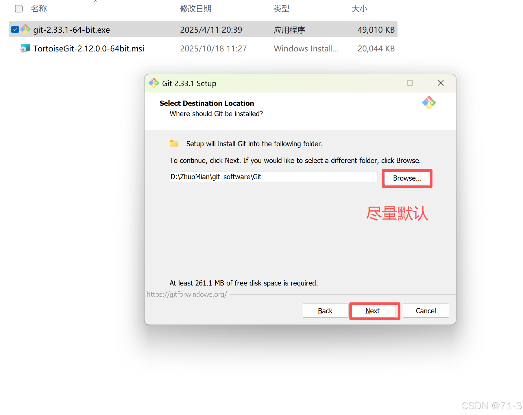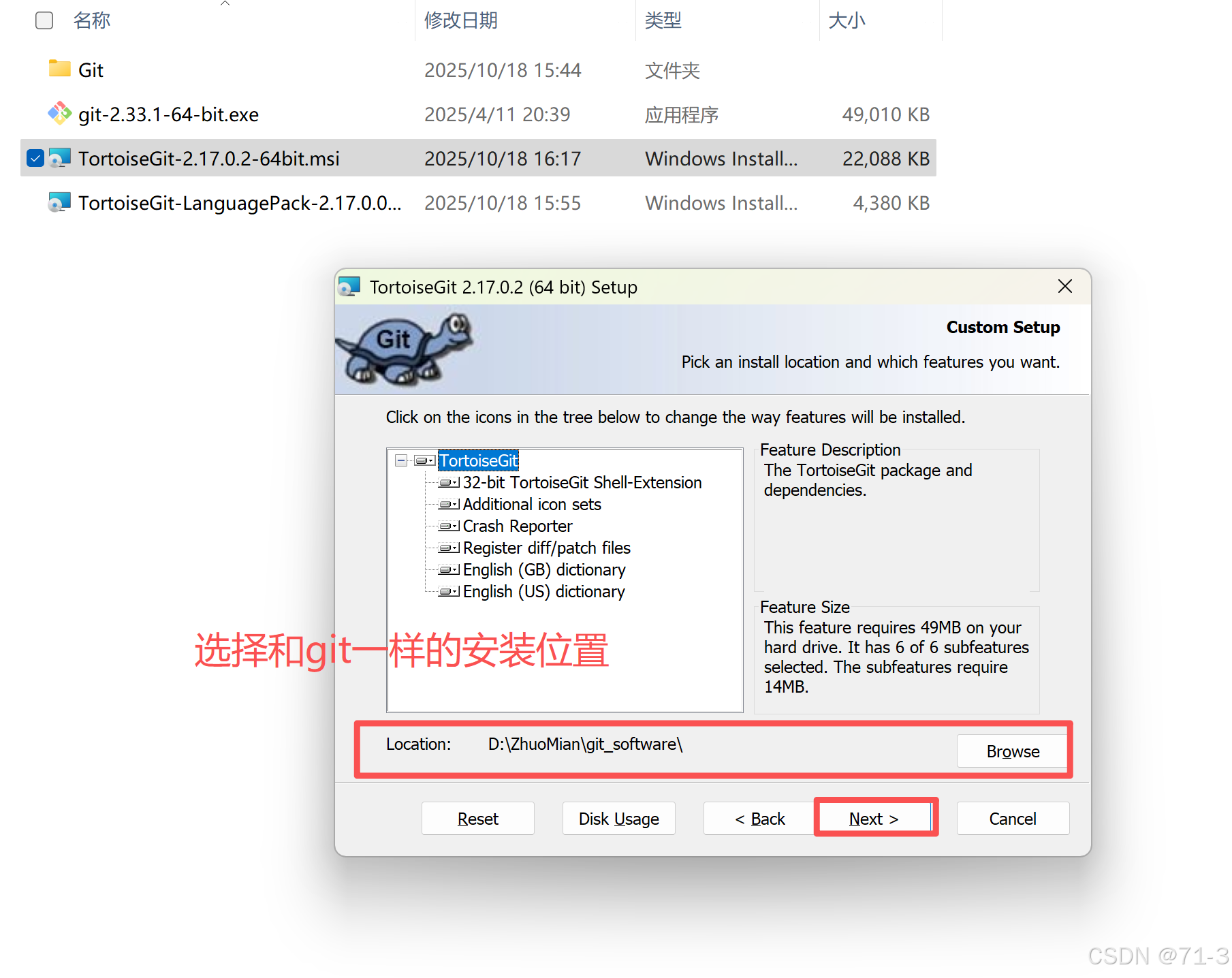 将软件安装到想要放的位置,可以默认也可以和我一样不默认(注意:这个软件和tortoisegit要放在同一路径下 )